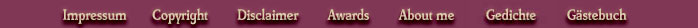 Impressum und Banner zum "Mitnehmen" :) Copyright Disclaimer Awards und andere Aufmerksamkeiten :) Gästebuch Ich über mich Gedichte